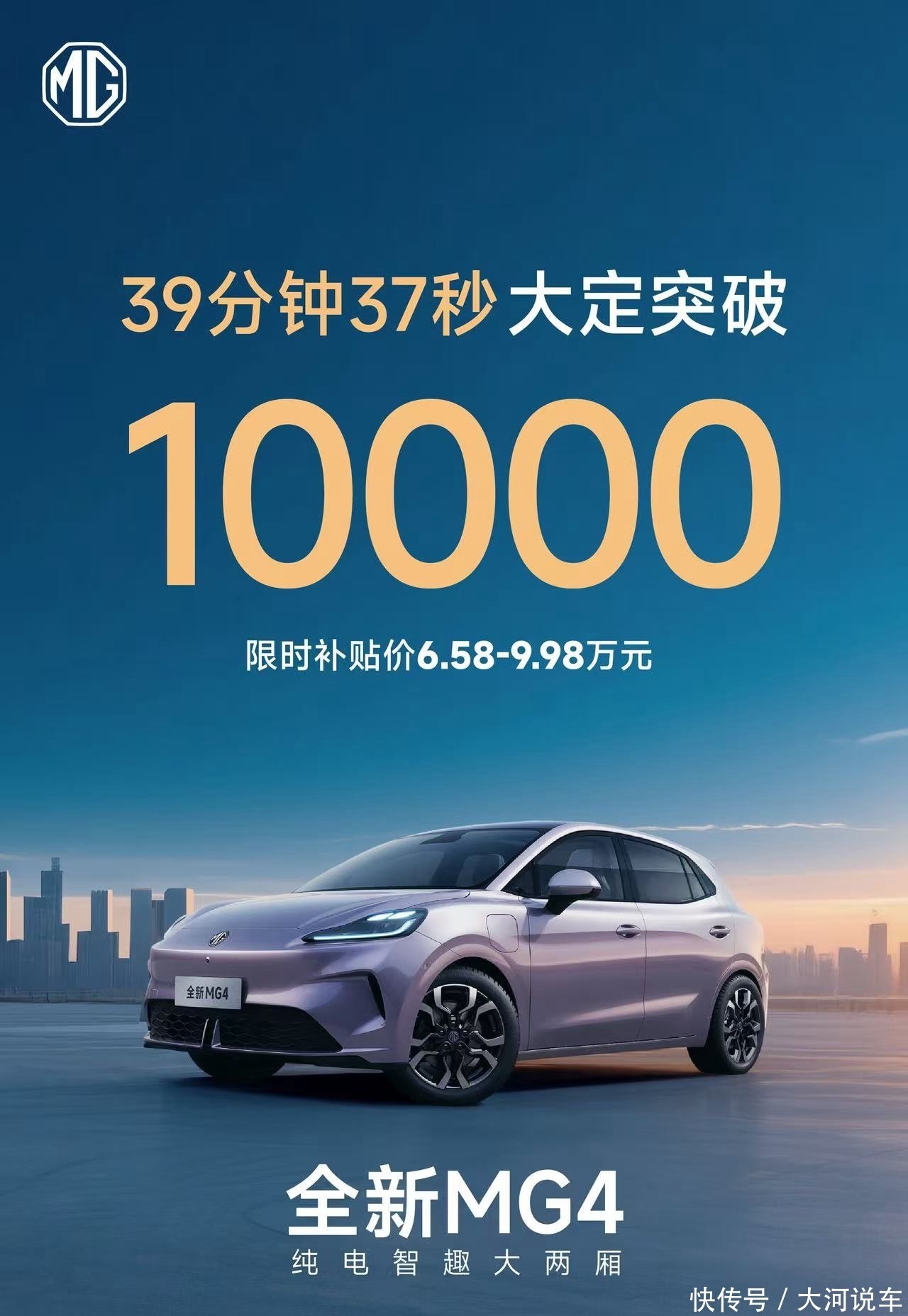 目前全新MG4所在的细分市场是中国新能源汽车最出销量的市场,也是竞争最激烈的市场,现有占比较高的比亚迪海豚、吉利星愿等热门车型。若想在该市场胜出,不但要以产品力取胜,价格更要到位。所以当全新MG4价格出来后,39分37秒时全国大定就突破了一万台,华中区域大定突破3000台,大有抢夺A0级市场最大块蛋糕的架势!